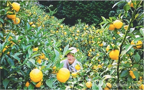 Shuji Nokubo, 57, head of JA Kochi’s Monobe Yuzu producers’ group, grows roughly 700 yuzu trees on a 70-are land located on a mountain slope at an altitude of about 500 meters.