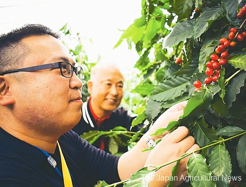 Yasuhiro Takao, 38, in charge of cultivation, said coffee trees “don’t require much time and effort compared to other fruit trees, and their merit is that there isn’t much work to do except during the harvesting period.”